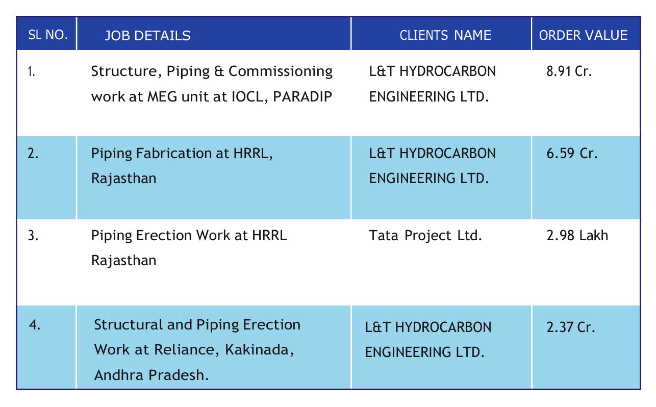 Our aim is Zero Accident. We have balanced the work progress with keeping our best work Quality& Safety. Where we have completing of works within Time period. We are watching Strictly HSE and Quality of our work and work place.So we have awarded for better HSE and Quality at IOCL Refinery project, Paradeep, HRRL Project Rajasthan and RIL Kakinada Project.
